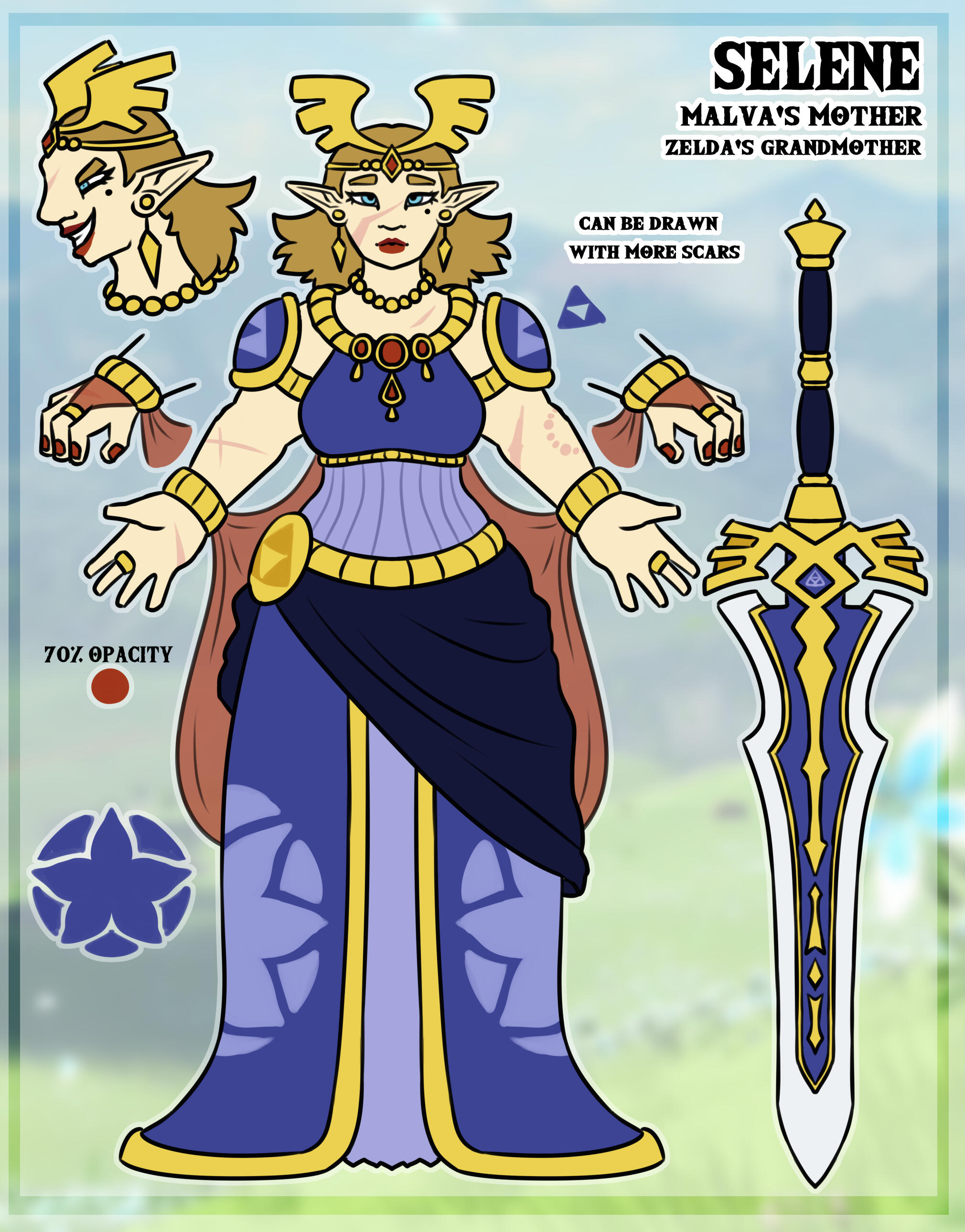 Simple add-ons (Close up tail, simple weapon, symbol...) are free but limited for a simple refThe amount of text is only limited to the size of the canva, i can add as much information as requested(Background are royalty images from here) or from tloz BOTWSimple ref size : around 2020 x 2580